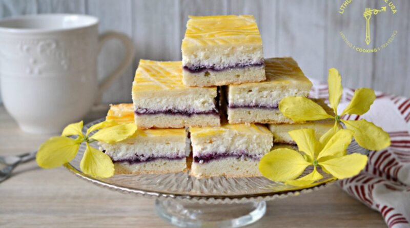 Tešla. Sviestą ir cukrų plakame elektriniu plaktuvu kelias minutes, kol gauname kreminę masę. Įmušame kiaušinį, išplakame. Sudedame grietinę ir vėl išplakame. Kitame inde miltus sumaišome su kepimo milteliais ir druska. Miltus pamažu įmaišome į tešlą, kai nesimaišo plaktuvu, tada minkome rankomis ir dedame į šaldiklį (tešla bus labai minkšta), kol paruošime varškės įdarą.